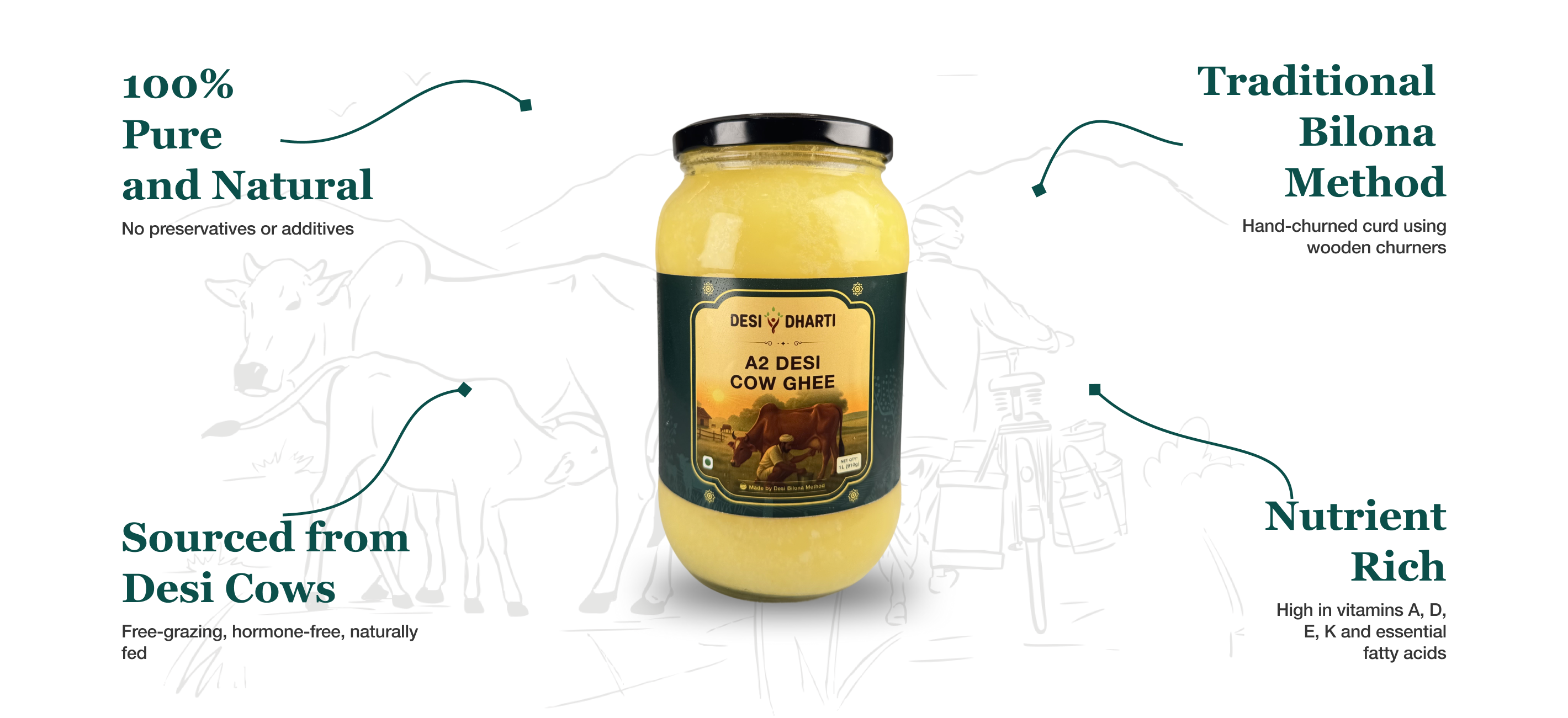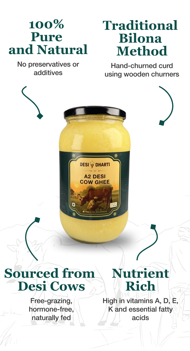 • Source: Desi Indian cows, ethically raised & free from hormones